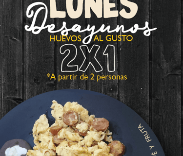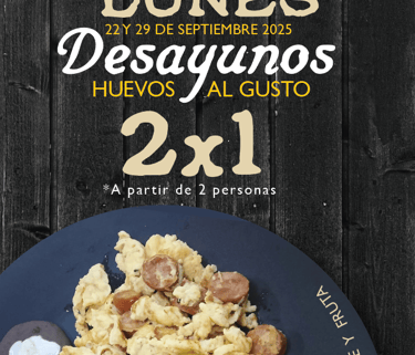Promoción exclusiva de 2x1 en huevos al gusto.