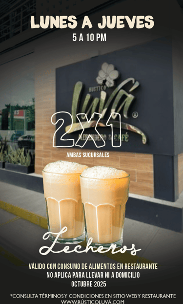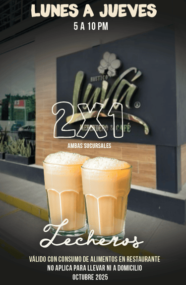 • 2x1 en Lecheros y Capuchinos tradicionales