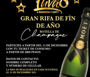 La rifa es organizada por Luvá Merenderos, válida en todas sus sucursales participantes.