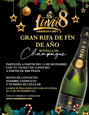 En Rústico Luvá queremos celebrar contigo. Si es tu cumpleaños y vienes acompañado de cuatro personas que realicen consumo individual de alimentos (un platillo por persona), ¡tu platillo es completamente gratis!